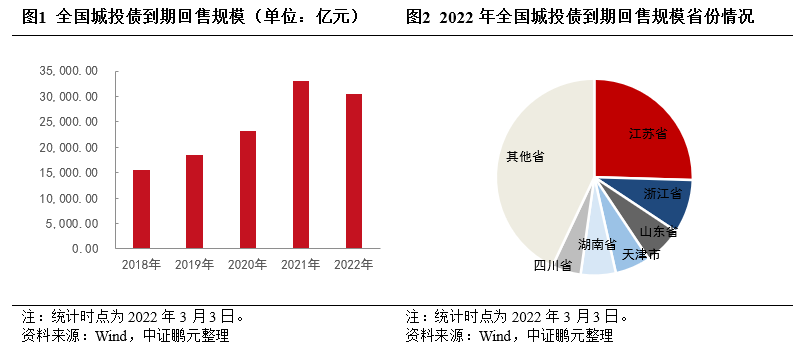 一、2022年四川省城投債到期回售規模全國排名靠前,可能發生回售的債券規模較大,3月為償債高峰期,AAA和AA級別規模占比較高,償債主體主要為地市級及區縣平臺,中期票據規模最大