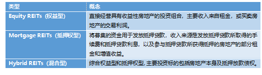 美國市場主要有Equity REITs(權(quán)益型)、Mortgage REITs(抵押權(quán)型)和Hybrid REITs(混合型)三種基本形態(tài),上市REITs主要以Equity REITs為主。