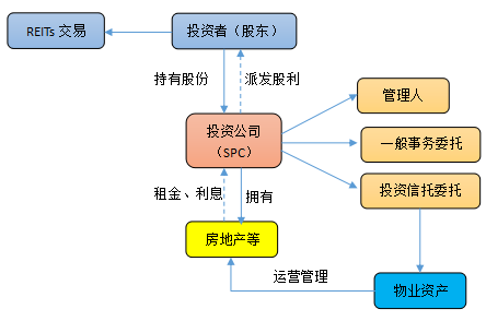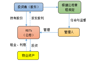公司型REITs是指通過設(shè)立以房產(chǎn)投資為經(jīng)營范圍的公司,將公司股份出售給投資人,公司再將收益以股利形式分配給投資人。