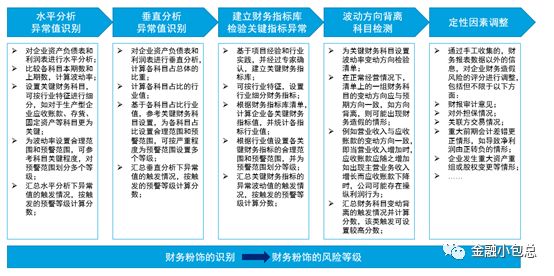 財務(wù)維度看,可以通過水平分析異常值、垂直分析異常值、建立分不同行業(yè)的財務(wù)指標(biāo)庫,并建立財務(wù)智能化自動化分析、財務(wù)粉飾識別、會計信息質(zhì)量識別和財務(wù)健康度評價,如下圖: