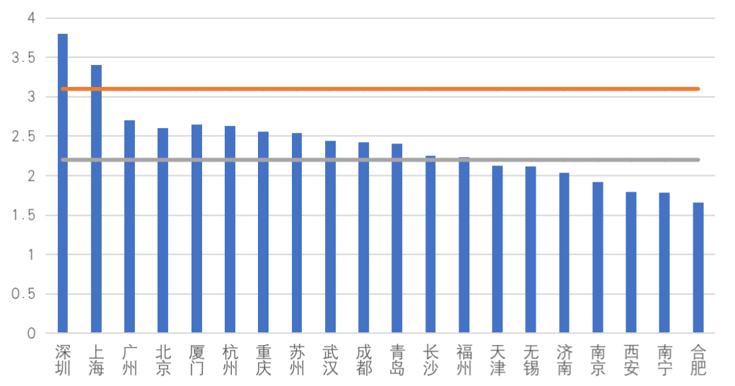 20城住宅平均物業費(元/㎡/月)