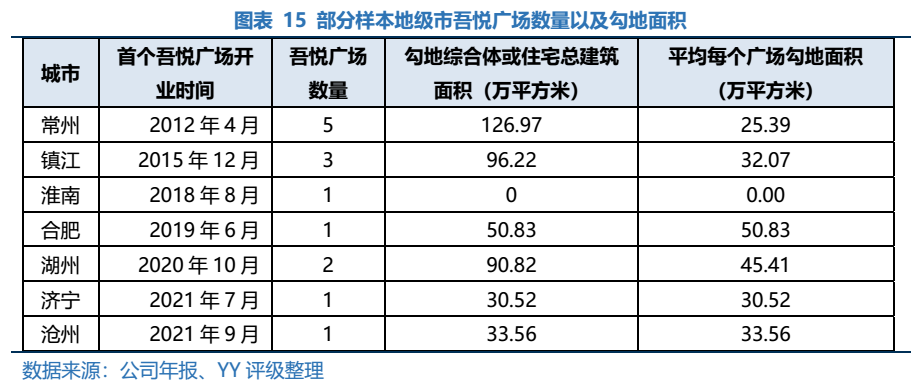 新城的吾悅廣場(chǎng)在眾多商業(yè)品牌中是運(yùn)營(yíng)較為成功的代表,這一優(yōu)勢(shì)反映了新城在商業(yè)項(xiàng)目中成熟的運(yùn)營(yíng)能力,另外一個(gè)方面,吾悅廣場(chǎng)的品牌力量一定程度上也成為了新城在周期中的保護(hù)傘。