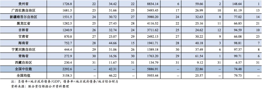 [3]地區(qū)債務(wù)率=地區(qū)債務(wù)/(一般公共預(yù)算收入+政府性基金收入+上級補助收入)*100%