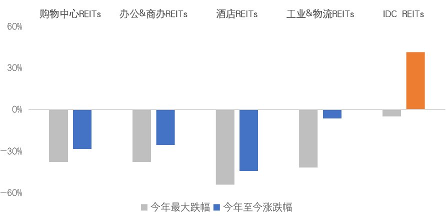 圖:IDC REITs今年至今累計(jì)漲幅