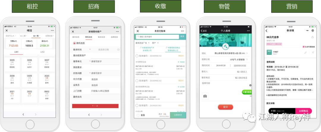 租控、招商、收繳、物管、營銷等環節的移動化