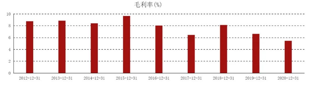 但利潤率卻不盡人意:凈利率僅3.92%;毛利率為12.5%,同比下滑8.77個百分點,相對于同等規(guī)模的企業(yè)而言已居于末位水平。