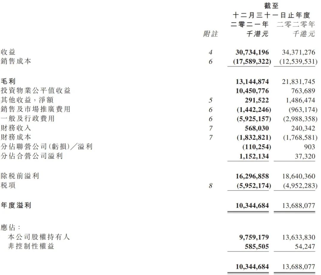 投資物業公平值收益增長驚人,為104.5億港元,同比增幅1268%。公告說主要是該集團其中3項可供出售的發展中物業轉撥至投資物業所產生的公平值收益,具體哪3項杠桿地產沒有找到。