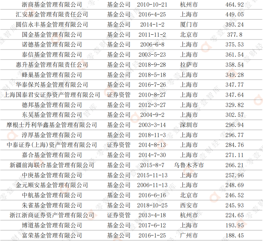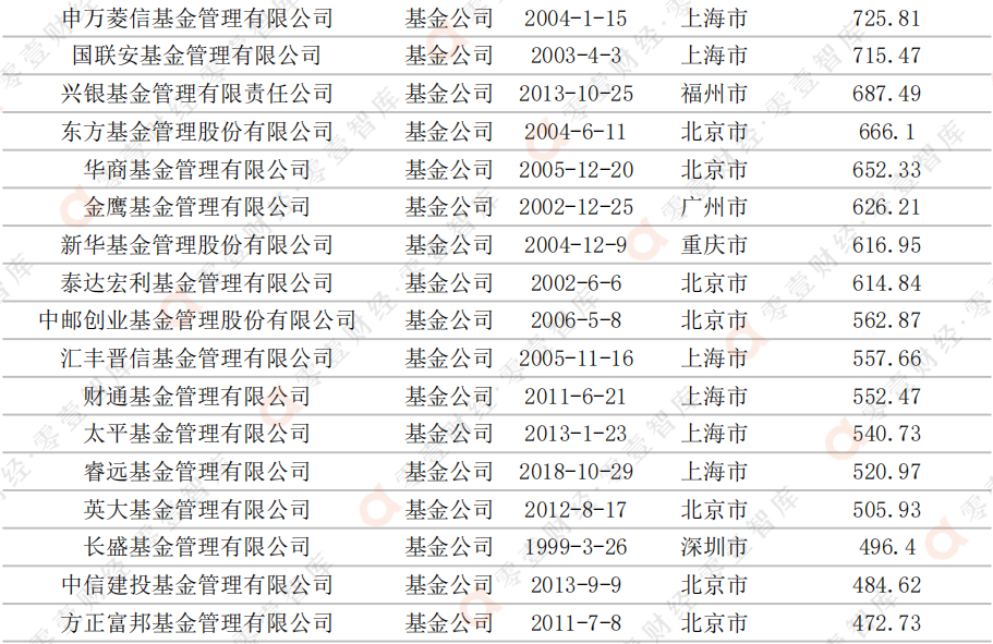 表:全市場基金規模排名前十的管理人