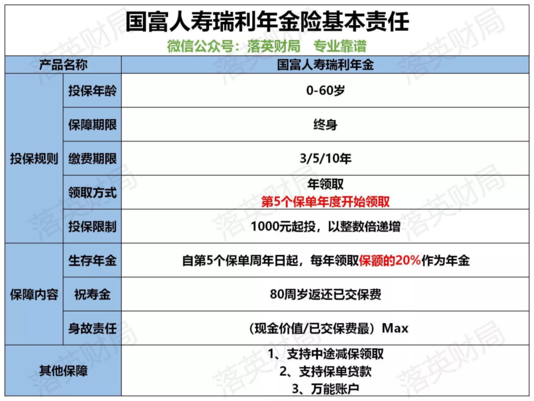 換句話說,如果80歲前身故,可以每年領(lǐng)錢,身故時還有身故保障金。