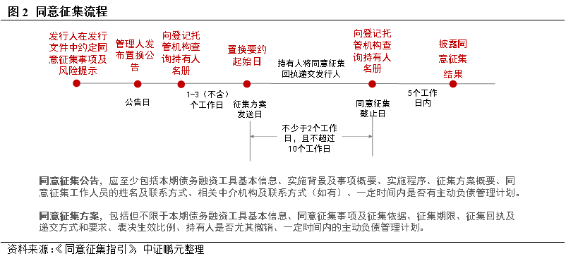 2022年5月5日,交易商協會發布《銀行間債券市場非金融企業債務融資工具同意征集操作指引(試行)》(簡稱《同意征集指引》)、《銀行間債券市場非金融企業債務融資工具置換業務指引(試行)》(簡稱《置換業務指引》),進一步豐富境內債券發行人主動負債管理工具,推動風險處置機制完善。