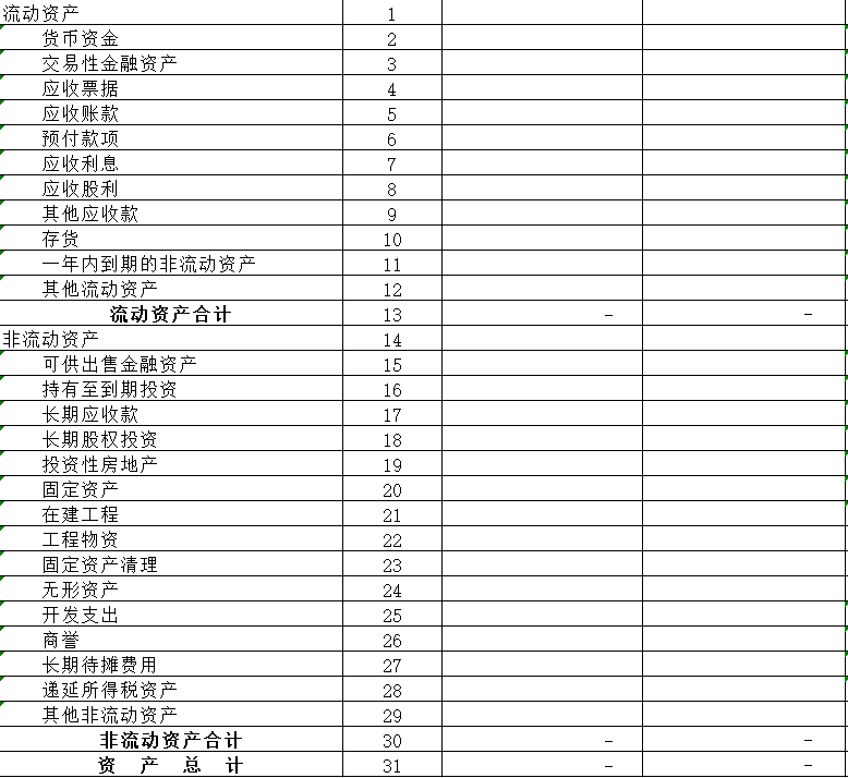 流動性資產里有:貨幣資金、交易性金融資產、應收賬款、存貨、其它流動資產等。而非流動性資產里面有:可供出售的金融資產、固定資產、其他非流動性資產等。