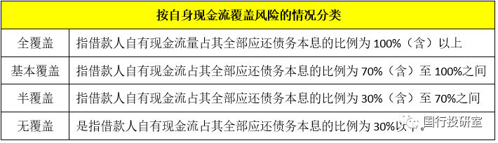 2013年銀監會發布的《關于加強2013年地方政府融資平臺貸款風險監管的指導意見》(銀監發(2013)10號)根據融資平臺自身現金流覆蓋情況將融資平臺分為全覆蓋、基本覆蓋、半覆蓋和無覆蓋等四類。當然這一分類方式是動態調整的,相當于對融資平臺進行動態評級。具體如下: