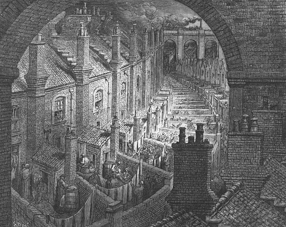 ▼ 19世紀(jì),倫敦產(chǎn)業(yè)工人居住的骯臟、擁擠的居住環(huán)境(來源:wikimedia)