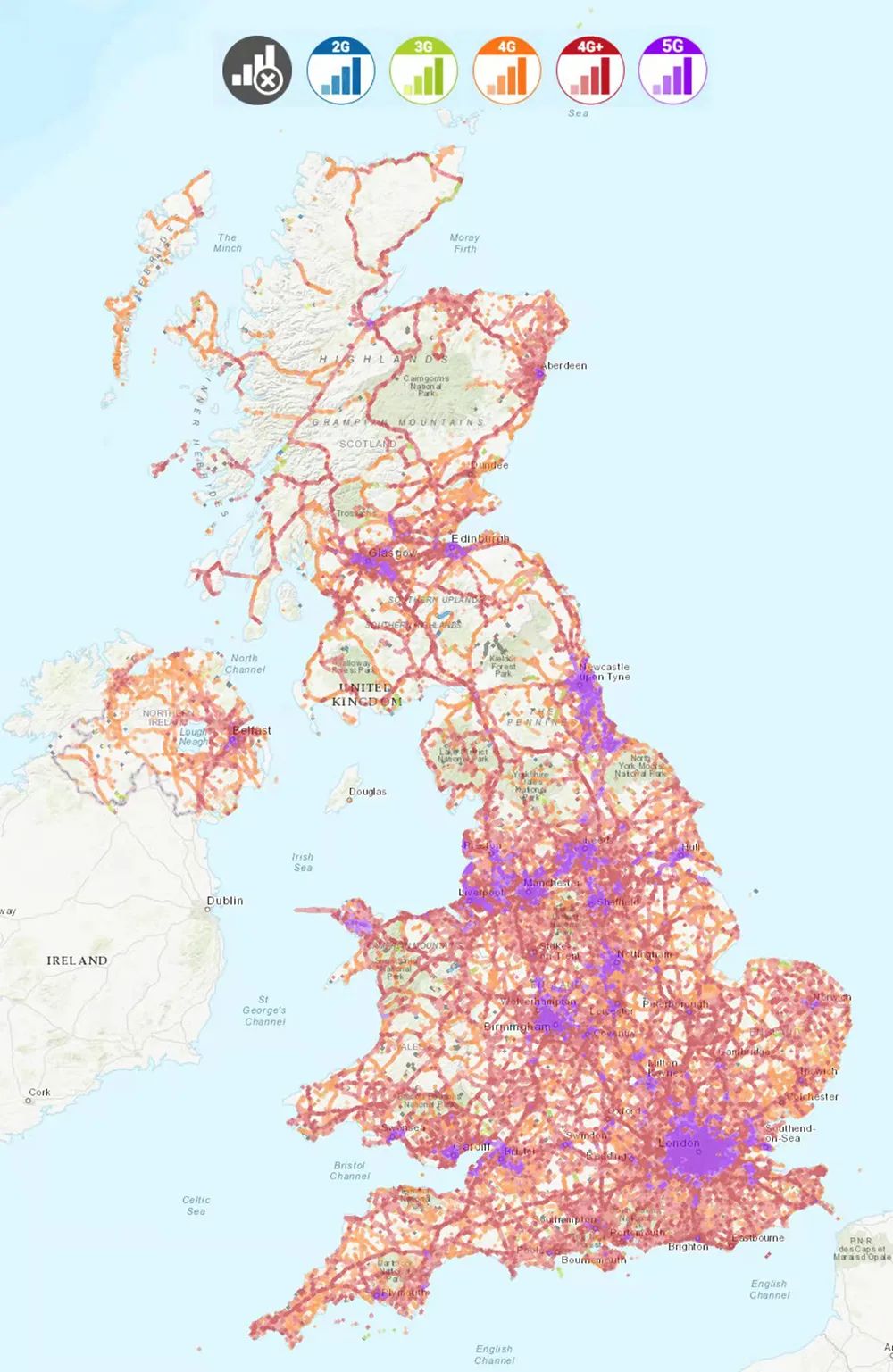 ▼ 英國網(wǎng)絡(luò)覆蓋分布示意