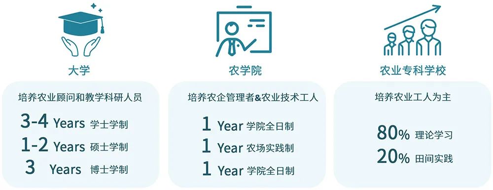 英國在成立培養(yǎng)農(nóng)業(yè)顧問和教學(xué)科研人才為主的農(nóng)業(yè)大學(xué)之余,更成立了培養(yǎng)專業(yè)「農(nóng)企管理者」和「農(nóng)業(yè)技術(shù)工人」的農(nóng)學(xué)院,以及以培養(yǎng)兼具農(nóng)業(yè)基礎(chǔ)知識和田間實踐的「農(nóng)業(yè)工人」為目標(biāo)的農(nóng)業(yè)專科學(xué)校,確保農(nóng)村人才適應(yīng)現(xiàn)代化農(nóng)業(yè)生產(chǎn)。