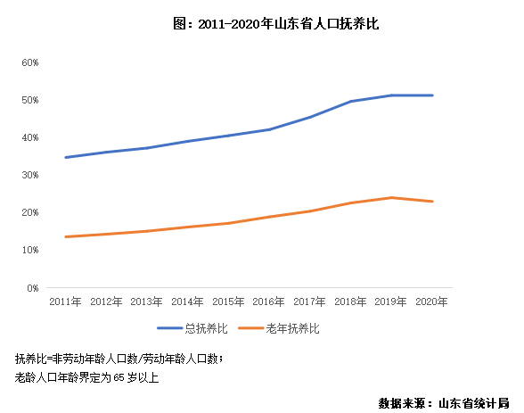 老年撫養(yǎng)比不斷提升,老齡化壓力較大。作為全國老年人口最多、老齡化程度較高、應對人口老齡化任務較重的省份,2020年山東省65歲以上老年人口占比達到了15.13%,達到1536.4萬人。從人口撫養(yǎng)比來看,老年撫養(yǎng)比持續(xù)上升。預計到2035年,山東省的全省老年人口占比將達到30%,進入深度老齡化社會。對房地產開發(fā)企業(yè)而言,老齡化對住宅功能設計方面提出了要求,以及在康養(yǎng)板塊有較多的機遇。但從另一方面來說,老齡化也有可能帶來的是房屋購買需求減弱的問題。