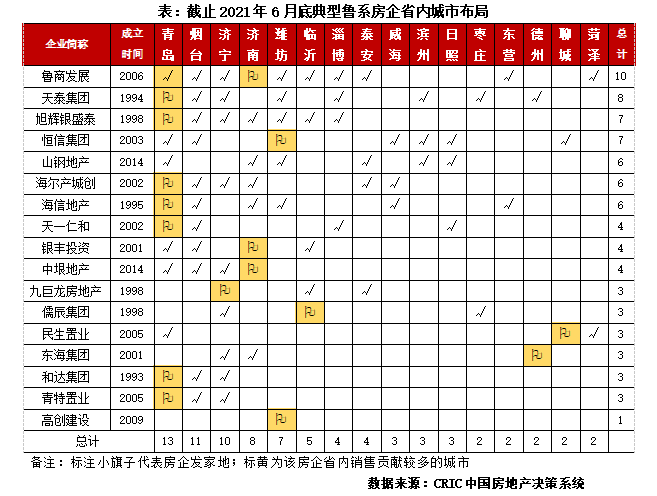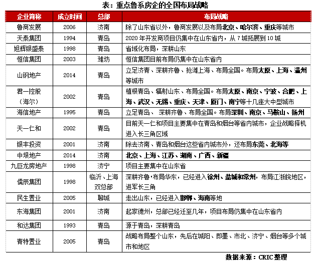 1、魯系房企規(guī)模普遍偏小,依然有較強地緣性