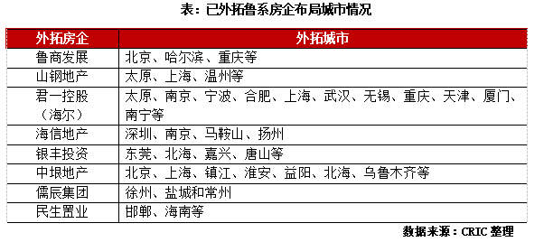 典型房企如儒辰集團,作為2020年CRIC排行榜上5家上榜的魯系房企之一,儒辰集團在深耕臨沂的情況下,隨著品牌影響力的不斷提升,近一年來開啟快拓步伐,先后成立臨沂、徐州、濟南、魯西、蘇南和鹽城等城市公司,以及浙江、蘇中、皖北事業(yè)部,一路向南推進。2021年啟用上海作為“第二總部”,在臨沂、上海實行雙總部運營。