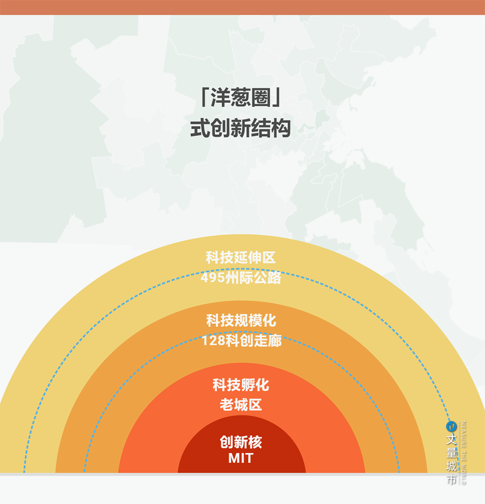 到這里我們看到,在資金、政策的加持下,波士頓已經搭建出MIT為核心→老城區→128公路→495州際公路的「洋蔥圈」式創新結構,從而源源不斷的吸引人才、企業來到波士頓。