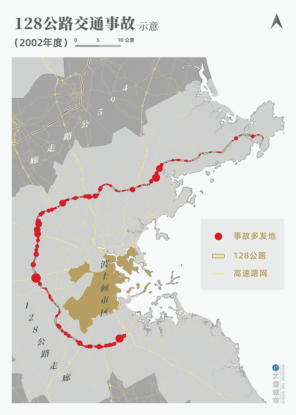 它成為波士頓地區最擁堵的道路(2007年平均擁堵率達125%);交通事故(2007年5.5萬起)占大波士頓地區1/3以上;陷入死循環的是,128公路沿線的企業員工,只有9%居住在科技走廊帶內,長距離通勤是常態。