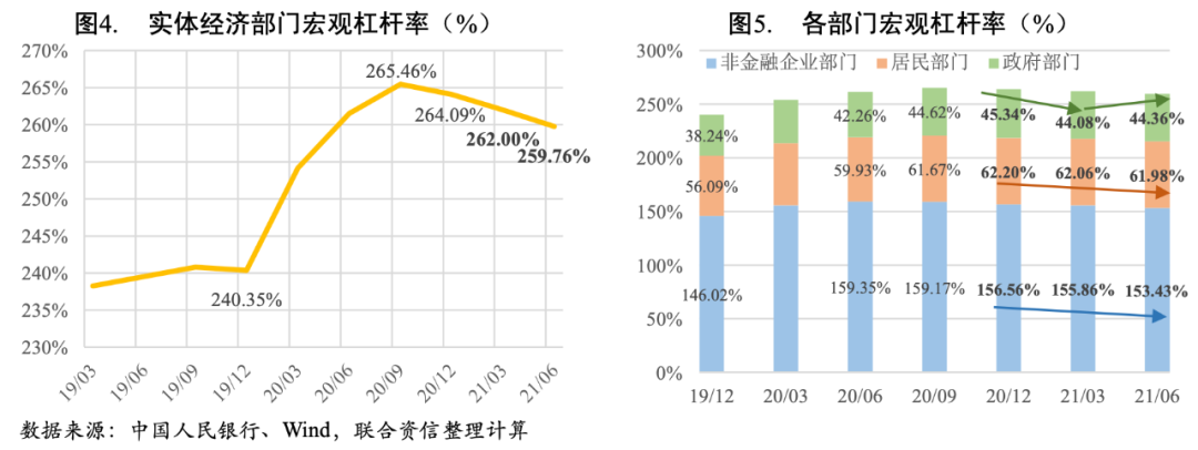 3.實體經(jīng)濟部門杠桿率有所下降,主要受非金融企業(yè)部門杠桿率下降拉動