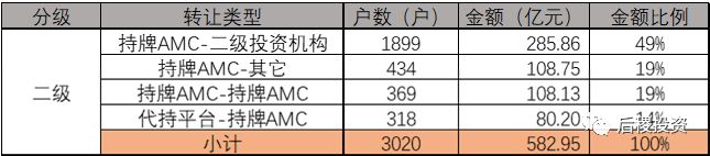 同時,我們把成交3戶以上的的機構劃為二級投資機構,3戶以下為其它;浙商資產體系下眾子公司、分公司除浙商主體以外全部劃為二級投資機構;外省的持牌機構在浙江省內開展業務也劃為二級投資機構。