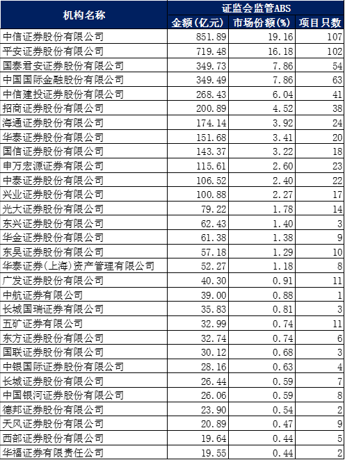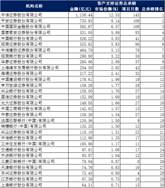 三、證監(jiān)會(huì)主管ABS承銷排名
