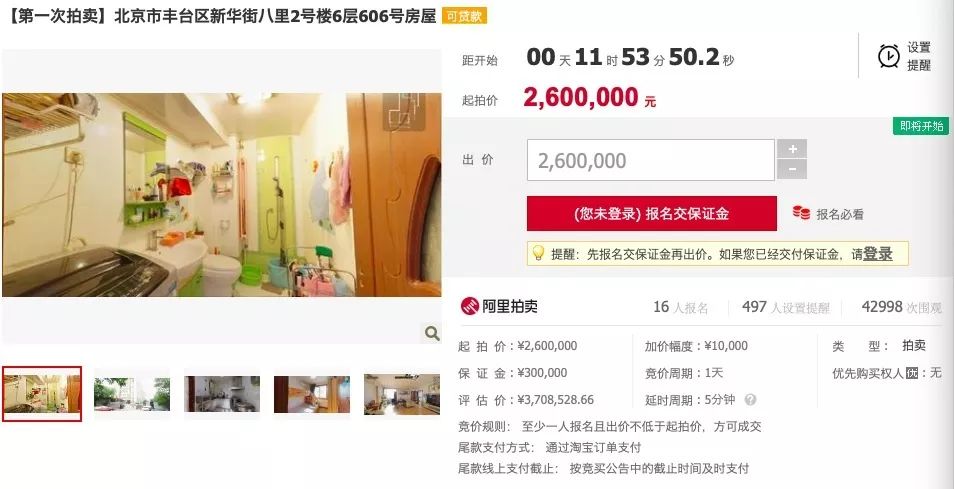 拍賣時間:可以看到距離開拍的倒計時,要注意這個時間,可以設(shè)置提醒,屆時會有短信通知,提前安排好盡調(diào)工作和準備工作,以免錯過;