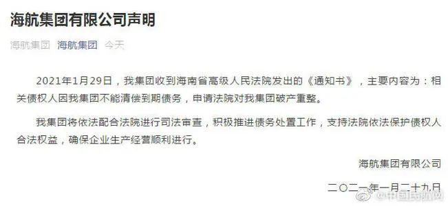一、海航真的進(jìn)入破產(chǎn)程序了嗎?
