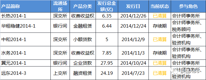 2014年全年,瑞華會計事務所一共參與了ABS項目6單,規模77.78億元,其中4單已到期清算。