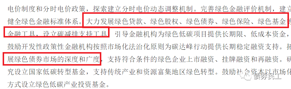 國務院2021年10月26日公布的《國務院關于印發2030年前碳達峰行動方案的通知》,明確提出“大力發展綠色貸款、綠色股權、綠色債券、綠色保險、綠色基金等金融工具”、“拓展綠色債券市場的深度和廣度”。綠色債券的發展再次迎來重磅利好政策。