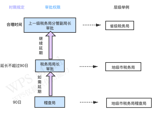 “稽查局應當自立案之日起90日內(nèi)作出行政處理、處罰決定或者無稅收違法行為結(jié)論。案情復雜需要延期的,經(jīng)稅務局局長批準,可以延長不超過90日;特殊情況或者發(fā)生不可抗力需要繼續(xù)延期的,應當經(jīng)上一級稅務局分管副局長批準,并確定合理的延長期限。”