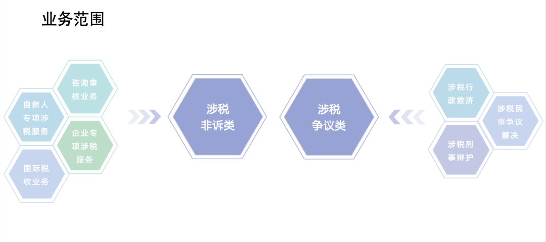 涉稅非訴業(yè)務主要涉及咨詢審核業(yè)務,企業(yè)專項涉稅服務、自然人專項涉稅服務以及國際稅收業(yè)務;涉稅爭議業(yè)務主要涉及涉稅行政救濟、刑事辯護以及民事涉稅爭議解決。