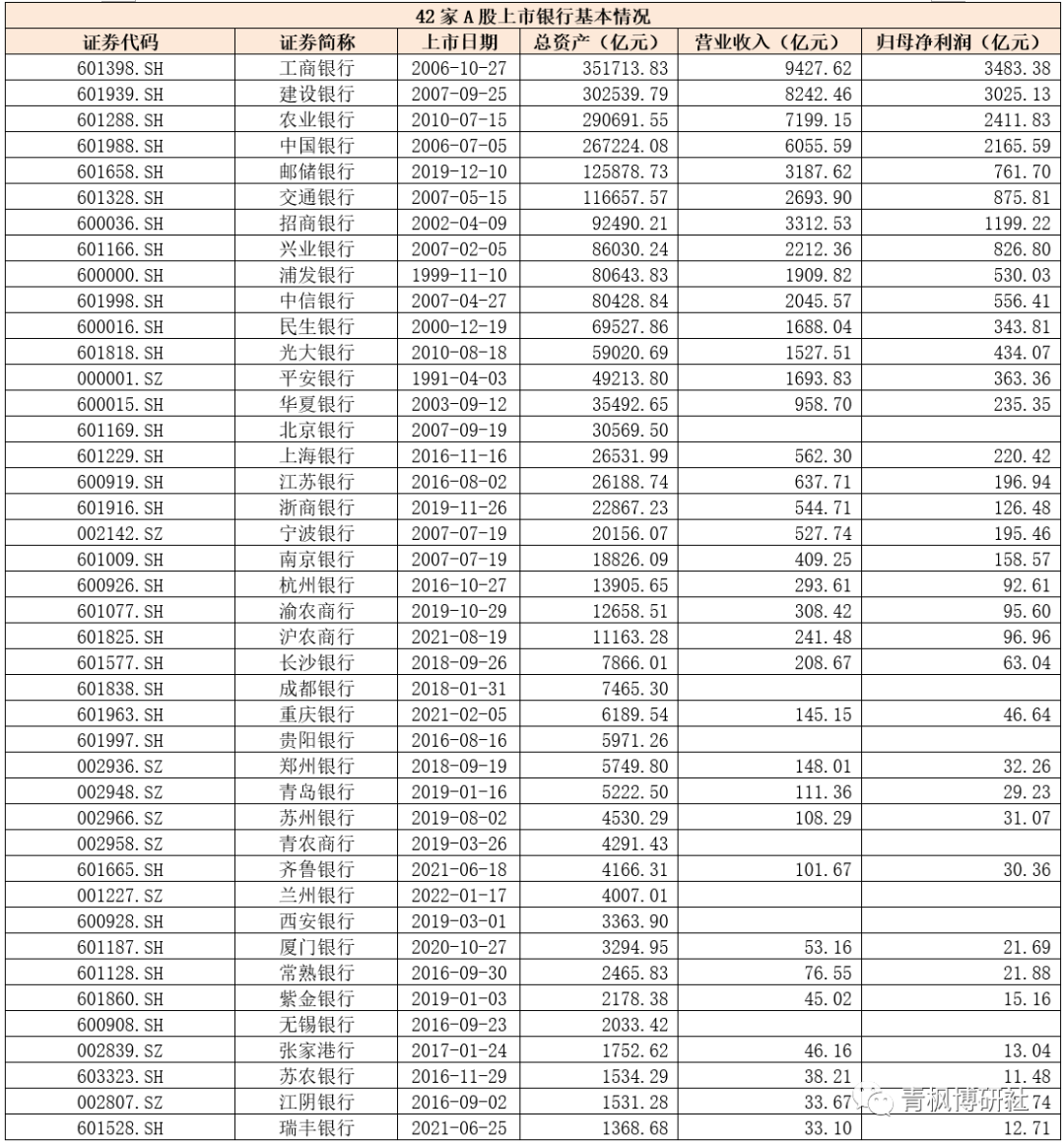 (四)從目前已成功實現A股上市的42家銀行來看,體量大都在1000億元以上,像大豐農商行體量只有500多億元基本沒有。當然,若大豐農商行此次成功實現上市的話,則意味著江蘇地區的上市銀行數量將會進一步增加至10家,這顯然不利于傳遞區域均衡發展的信號。