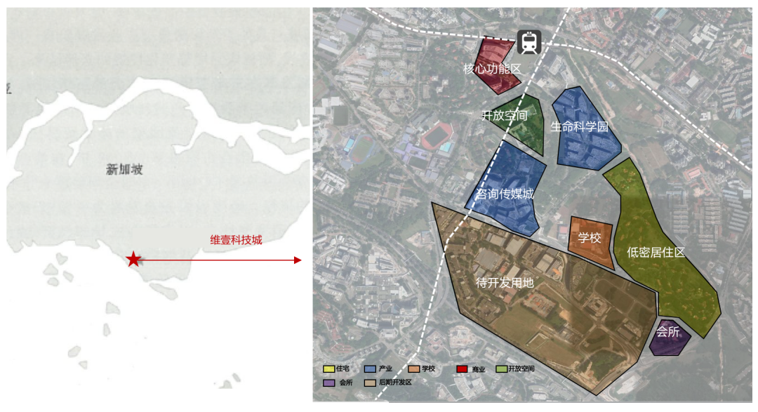 圖:新加坡緯壹科技城波那維斯達(dá)站功能區(qū)劃分