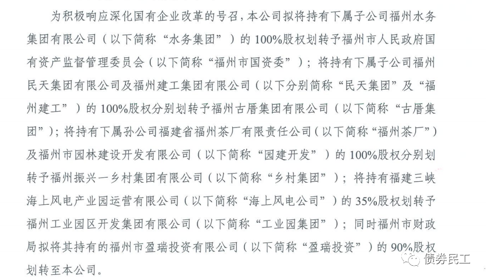 3、根據(jù)福州國有資本投資運營集團有限公司(主體信用等級AA+)2022年2月9日的公告,擬將持有下屬4家下屬子公司股權(quán)劃出,同時福州市財政局擬將其持有的福州市盈瑞投資有限公司的90%股權(quán)劃轉(zhuǎn)至公司。
