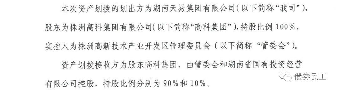 10、根據(jù)湖南天易集團有限公司(主體信用等級AA+)的公告,擬劃撥由其100%持股的株洲高科汽車園投資發(fā)展有限公司,接收方為公司控股股東株洲高科集團有限公司。株洲高科集團有限公司(主體信用等級AA+),存量債券金額為199.62億元。
