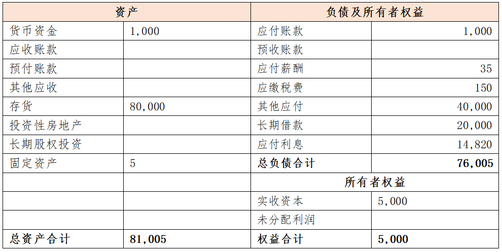 案例背景:某項目公司下有100畝住宅用地,開發(fā)商拿地后未開發(fā),欲轉讓項目公司100%股權,土地轉讓報價為1000萬/畝,對方提供項目公司最近一次資產負債表如下表所示: