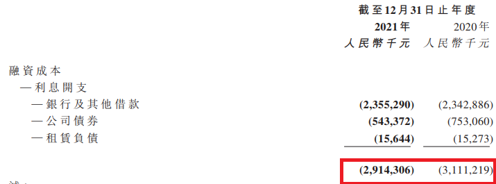 另外如下圖,杠桿地產看到美的置業2021年的融資成本也有一定減少。2020年超31億元,2021年只有29億元出頭。