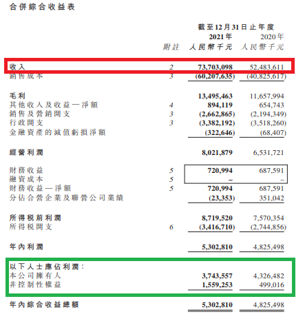 如果我們看歸屬凈利潤發現的問題更多,只有37.44億元,而2020年尚有43.26億元——也就是說,營收增長了那么多,毛利也增長了一些,但是歸屬凈利潤居然是下滑的。