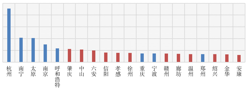 圖:2021年1月百強房企拿地建面TOP20城市