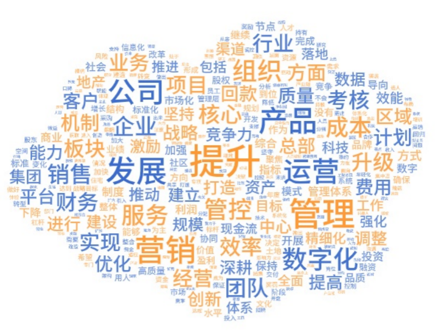 具體舉措中,提及頻次最高的幾個(gè)關(guān)鍵詞為產(chǎn)品、營銷、運(yùn)營和數(shù)字化。由此可見,這四個(gè)方面是正是房企當(dāng)前調(diào)整、優(yōu)化、變革的主要切入點(diǎn)。”