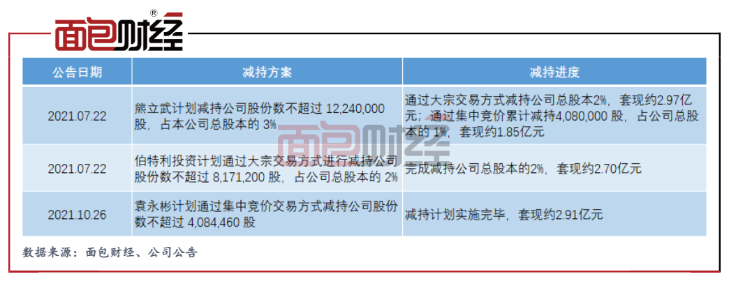 限售股解禁以來,熊立武、蕪湖伯特利投資管理中心、袁永彬紛紛拋出減持方案。根據不完全統計,截至當前,這些股東已累計套現超過10億元。