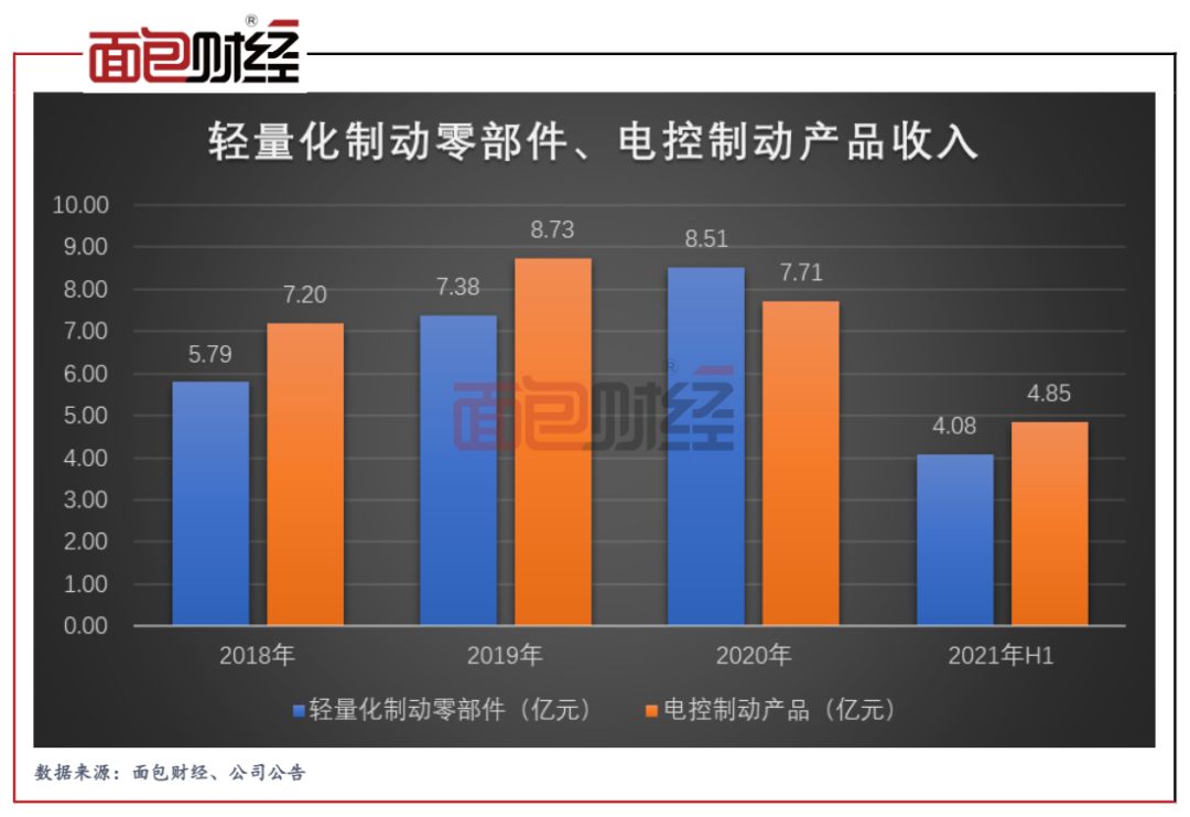 2021年上半年,伯特利輕量化制動零部件實現營收4.08億元,同比增長約26%;受益去年同期低基數,電控制動產品今年上半年的營收增速有所加快,同比增長約82%至4.85億元。