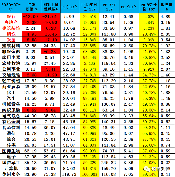 附一:申萬一級行業(yè) 漲跌幅、估值、股息率、ROE等