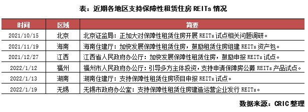 除了保障性租賃住房貸款,公募REITs如何對接保障性租賃住房也成為了近期各地政策的重點關注方向,其中如2022年1月19日,無錫發布《市政府辦公室關于加快發展保障性租賃住房的實施意見》,其中就提到支持保障性租賃住房建設、改造、運營企業發行不動產投資信托基金(REITs)融資。可見,在未來多方位的保障性租賃住房領域融資支持下,將在一定程度上引導房企調整投資布局,同時也不排除部分房企主動向保障性租賃住房方面積極發力。