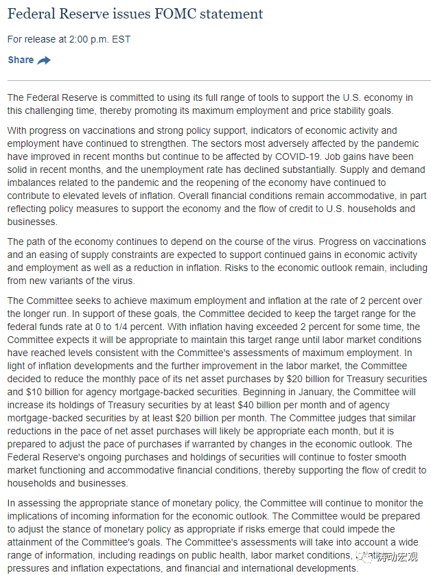 2021年12月14-15日,美聯(lián)儲召開了年內(nèi)最后一次議息會議,并于12月16日凌晨兩點(北京時間)發(fā)布會議決議,現(xiàn)解讀如下: