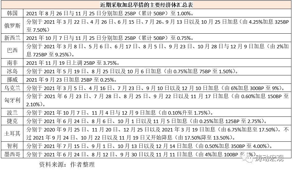 例如,2021年11月以來,已有韓國、新西蘭、巴西、南非、烏克蘭、匈牙利、波蘭、捷克、智利和墨西哥等經(jīng)濟選擇加息,既包括發(fā)展中國家,也包括韓國和新西蘭等發(fā)達經(jīng)濟體。