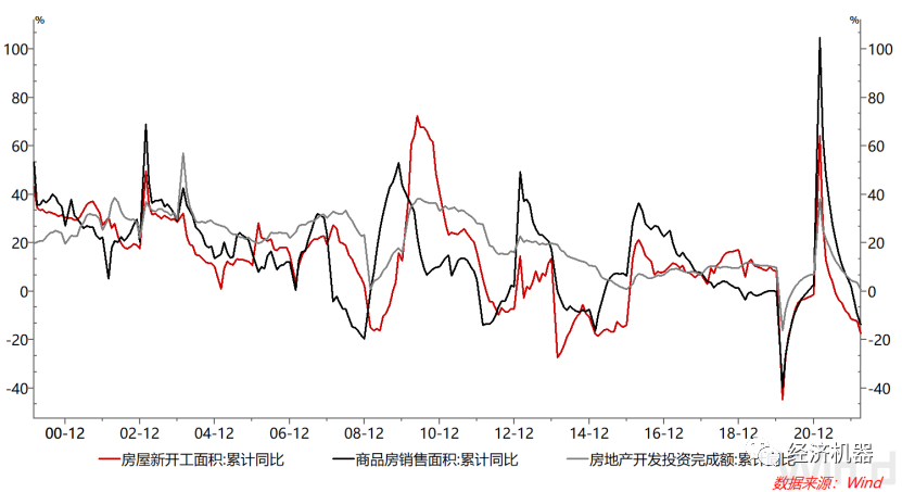 圖15:房地產(chǎn)新開工、銷售面積及投資同比繼續(xù)回落