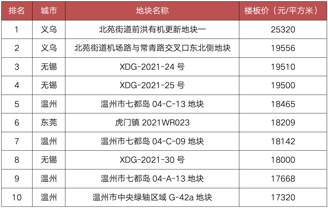 表:2021年8月成交土地單價排行榜